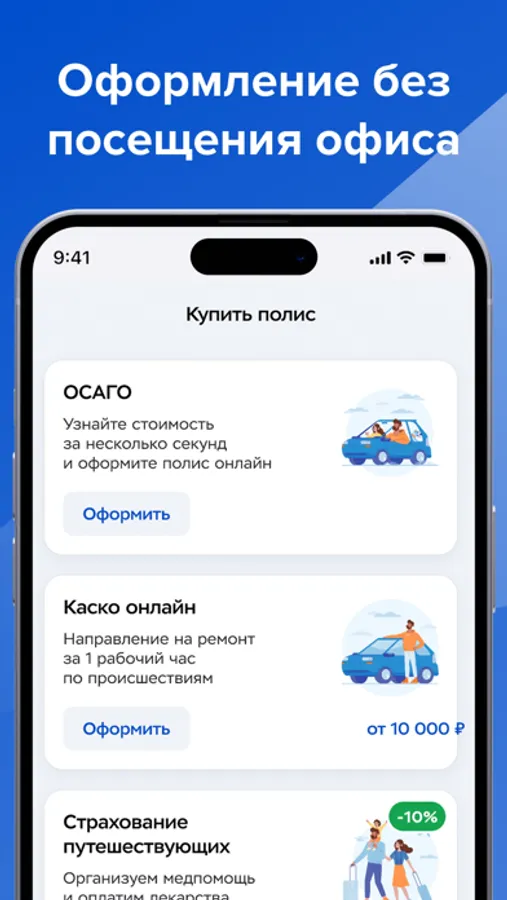 - возможность оформить новый полис и продлить существующий без посещения офиса в любое удобное для вас время