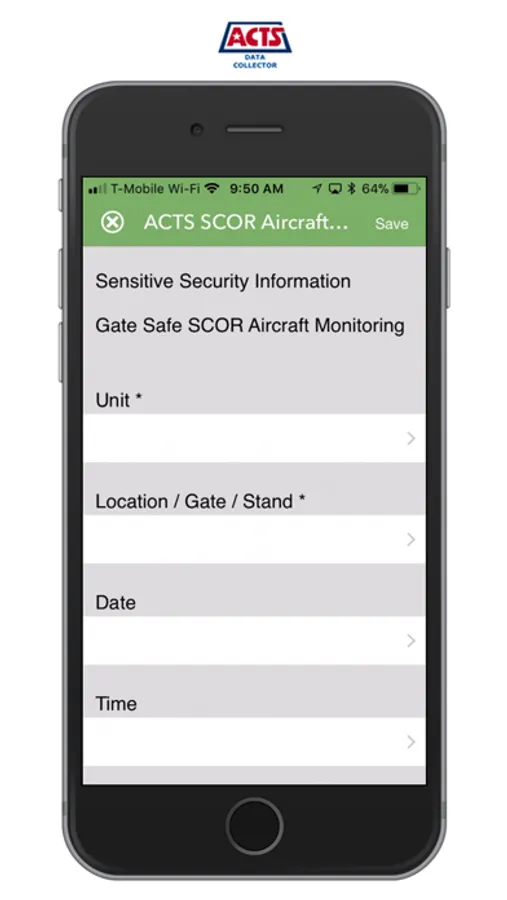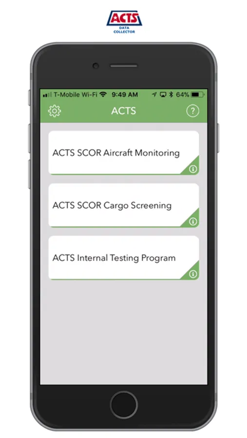 ACTS Data Collector is a mobile online and offline data collection tool used by ACTS for capturing documented observations related to aircraft catering inspection and cargo screening using mobile device such as an iPhone or an iPad.
