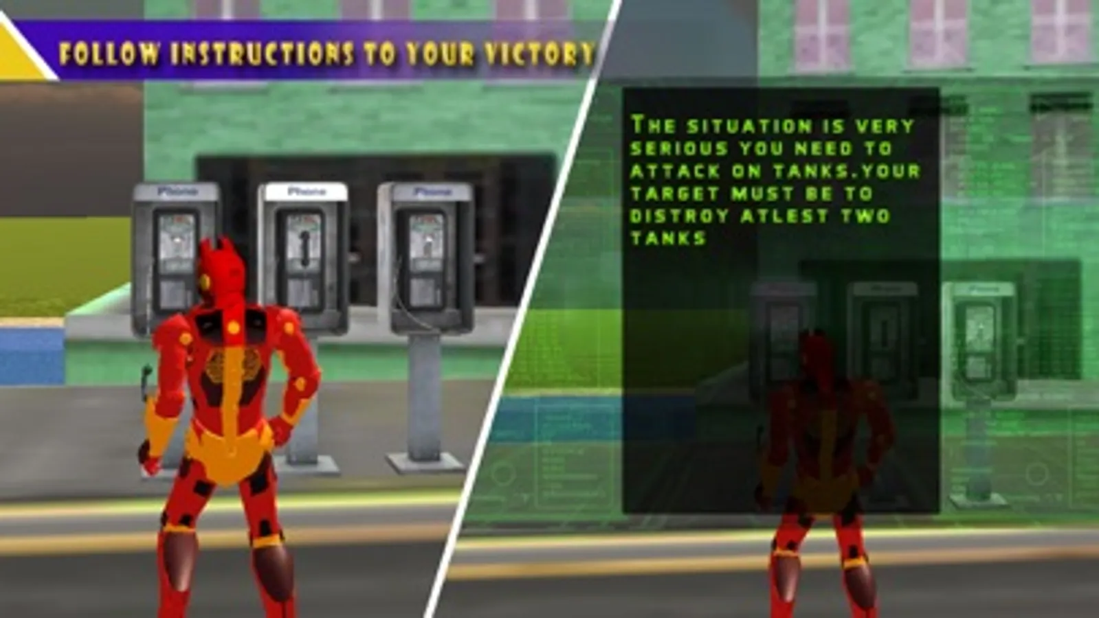 The knight of metal realm must complete all missions that his commander gives him and this time a rogue army with heavy war tanks has struck the superhero city, how will the iron robot hero rescue his people in this crime city? The metal knight must use his grand action and spell beams like power shots to destroy the army commander.