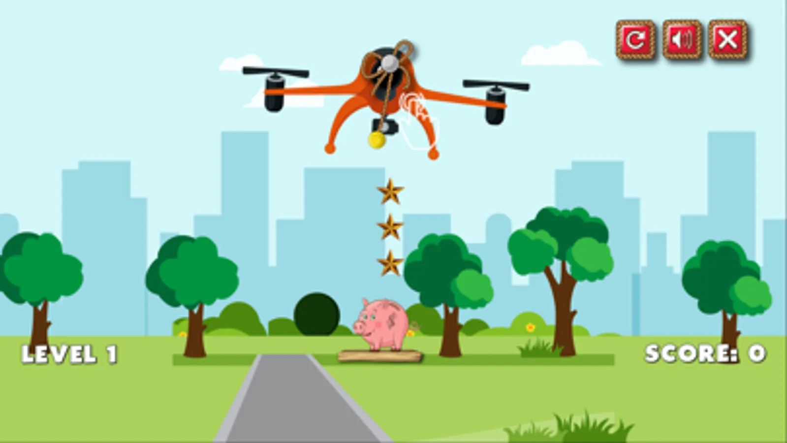 Use the finger drag cut the rope for keep score and coins put on piggy bank