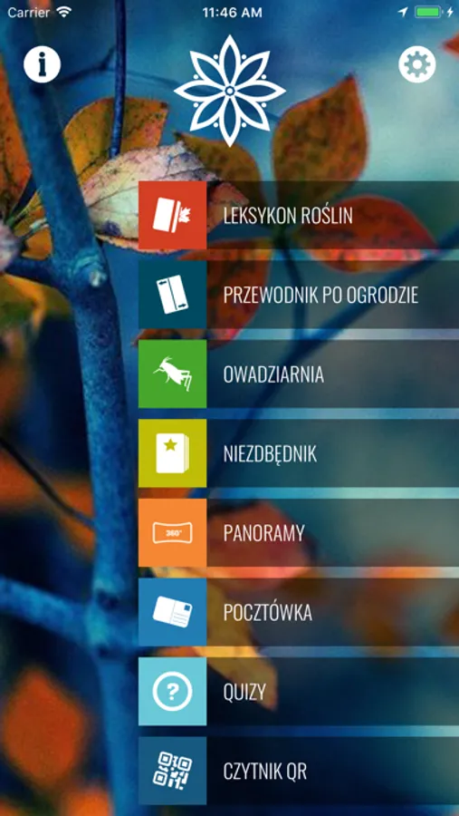 Ponadto w aplikacji znalazły się informację o Centrum Edukacyjnym i jego ofercie, przewodnik po ogrodzie, owadziarnia i gra terenowa co w trawie piszczy, panoramy, pocztówki, quizy sprawdzające wiedzę.