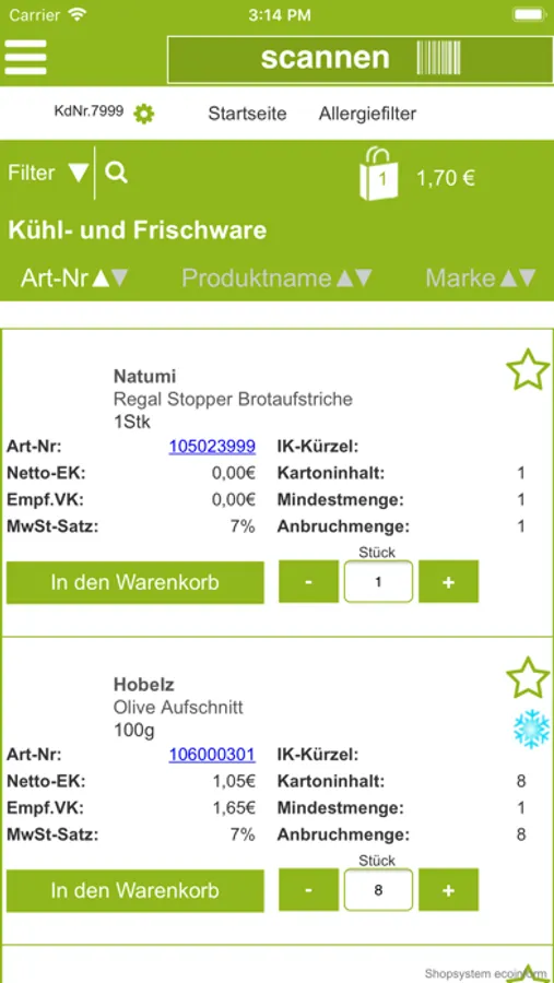 Stellen Sie Ihren Einkauf beim Pural Webshop einfach per Scanner-Funktion mit dem Smartphone zusammen.