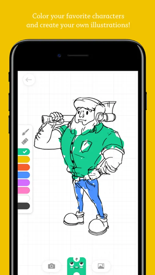 Over a dozen templates available for coloring characters and objects from the story. Create your own illustrations by drawing on your own canvas.