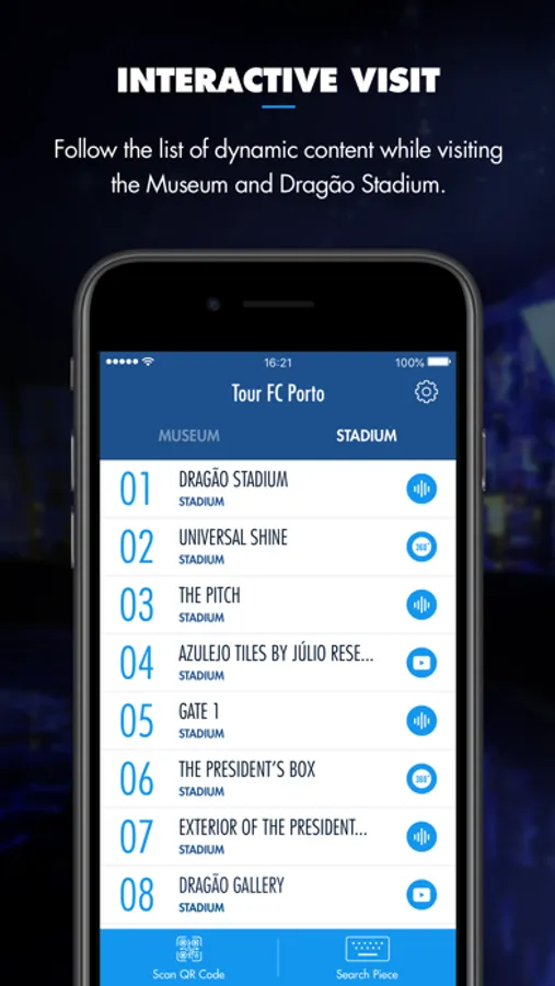 experience in which FC Porto Museum and the Dragão Stadium extend to the virtual world with new dynamic content - audio,