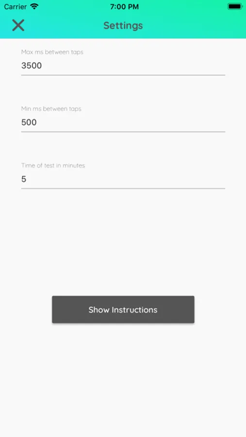 Edit the number of rounds per test, maximum time between tap and start of the timer and much more.