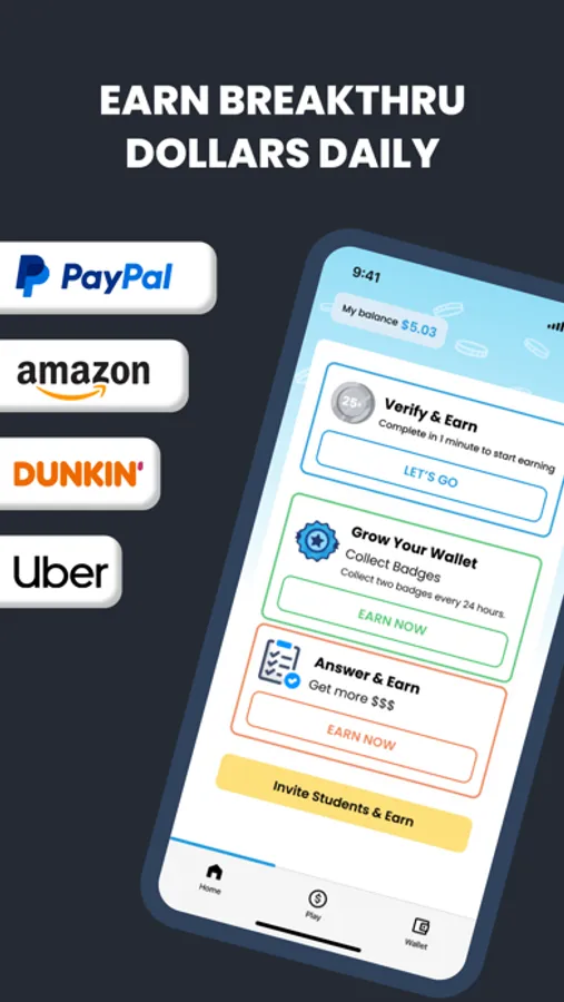 - Financial Resources and Wellness: Looking to fund your education? Earn Breakthru dollars on the app in under five minutes.