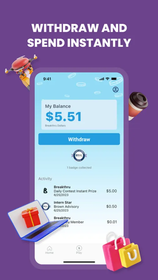 - Collect company badges and earn Breakthru Dollars.