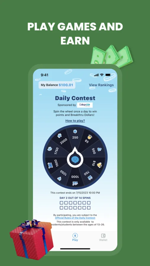 - Spin our Daily Contest Wheel for a chance to win even more Breakthru Dollars.