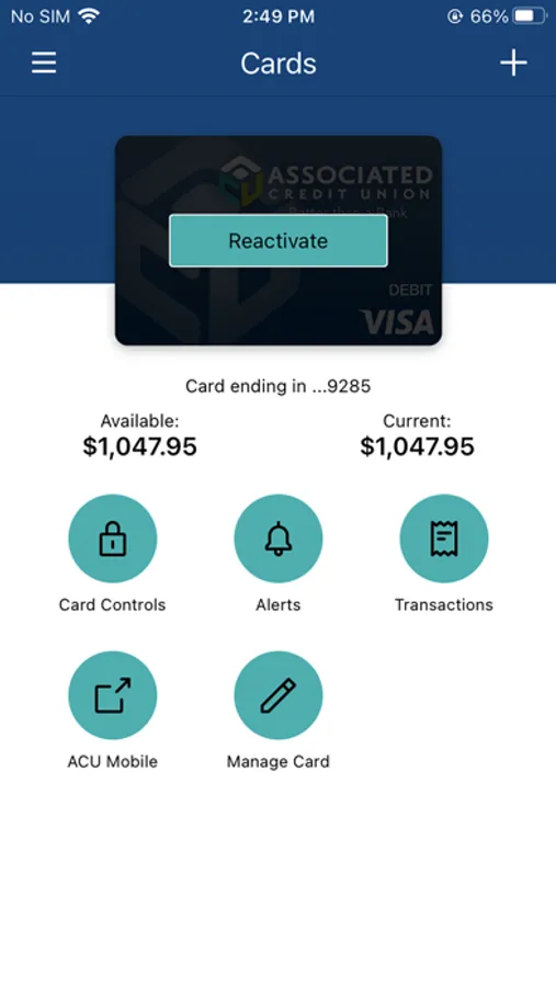 Use this app in conjunction with "Associated Credit Union" app to get the most benefit out of your card.