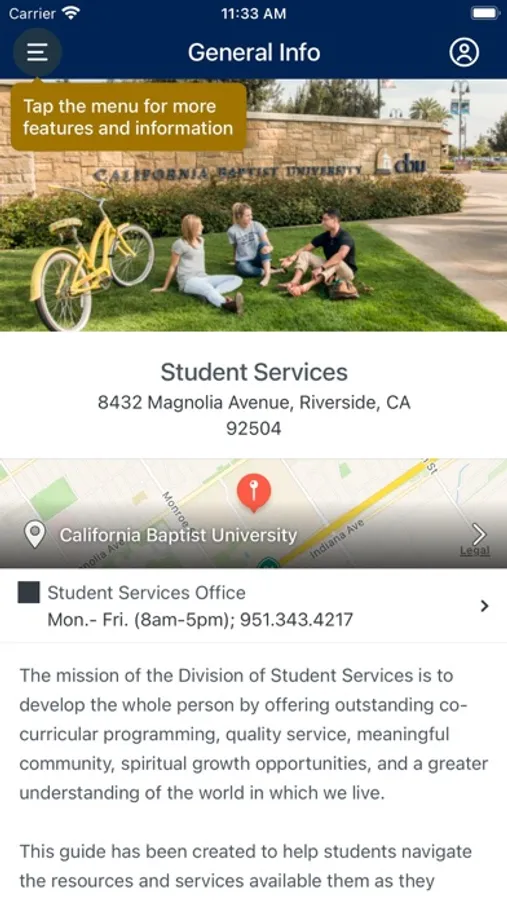 The Life @ CBU App is designed to connect you to the various services, resources and opportunities available through the Student Services Division at California Baptist University. Lance Up!