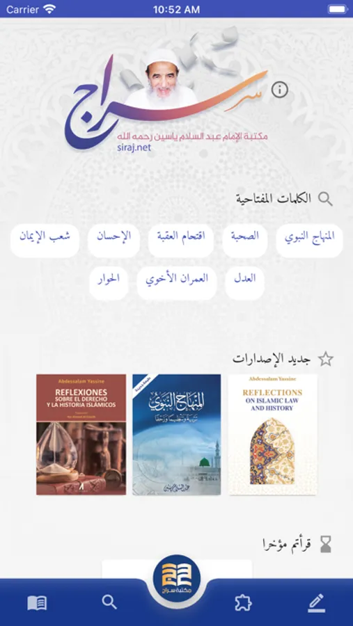 " سراج" موسوعة إلكترونية لمؤلفات الإمام عبد السلام ياسين رحمه الله تضم كتبه في عرضٍ مميز يسهل البحث والتصفح والنسخ.