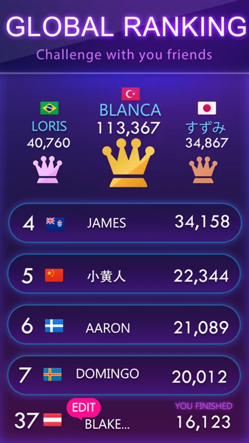 The and horizontally. the more glow blocks eliminated you can, the more scores you will get. The ranking will be reset each week, You can challenge players all over the word.