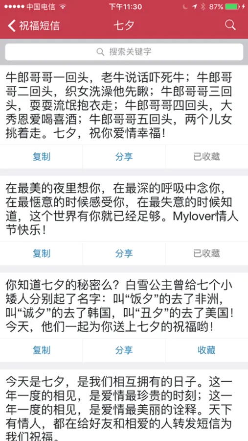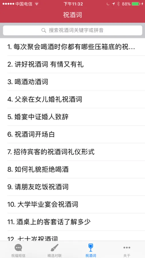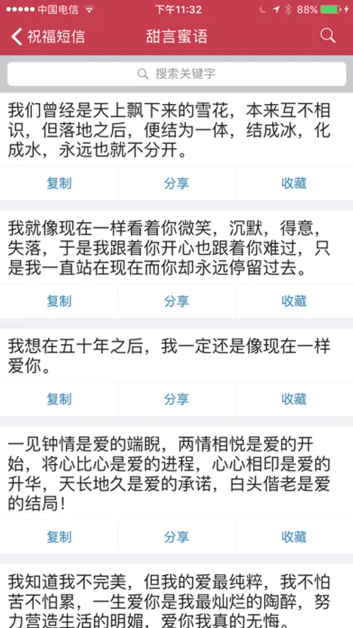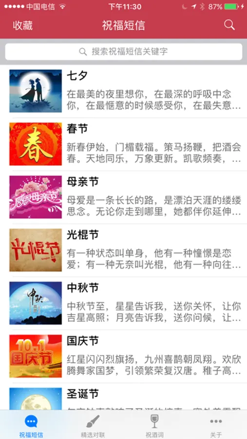 - 支持对祝福短信内容的搜索。