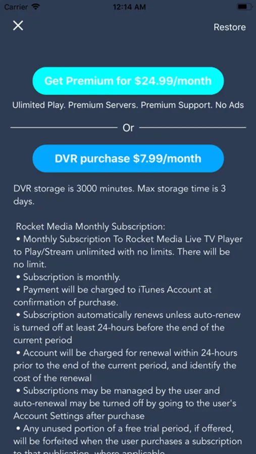 • Monthly Subscription To Rocket Media Live TV Player to Play/Stream unlimited with no limits. There will be no limit.