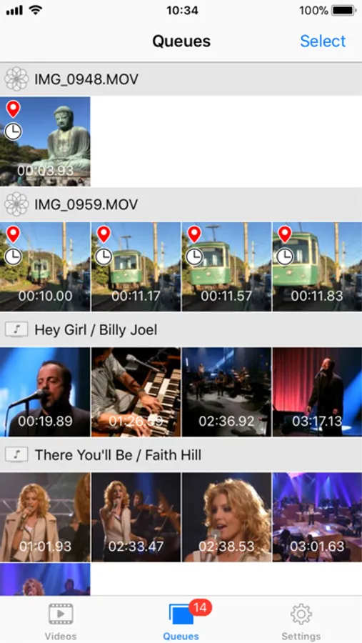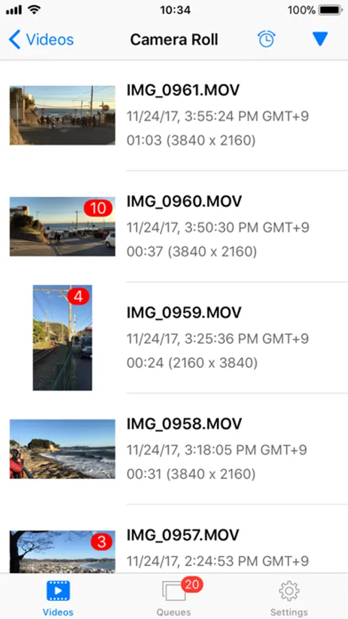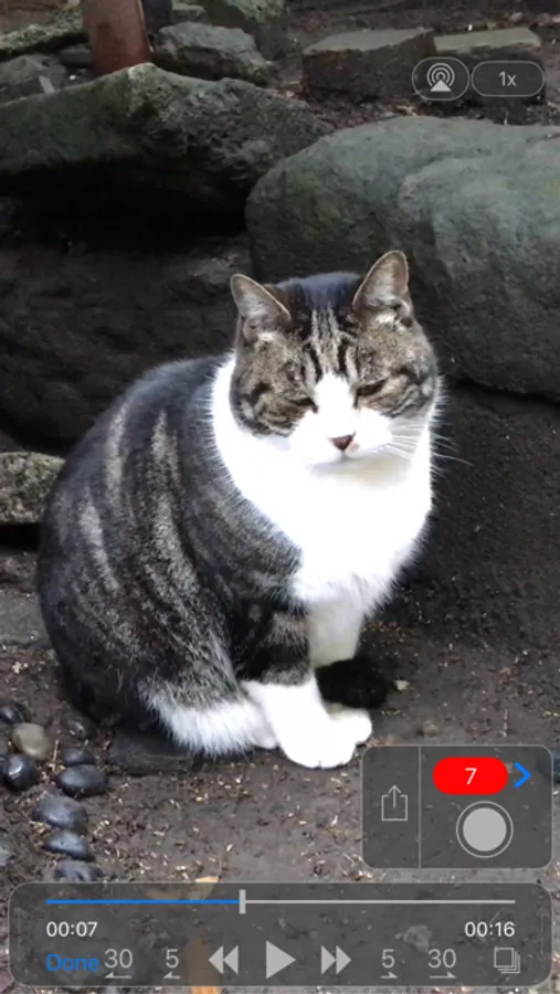 ◆Saving #2: Tap the gray round button to save a frame image to the Queues temporarily. After that, you can save/share multiple photos in the Queues to the Camera roll, or send to other services at a time.