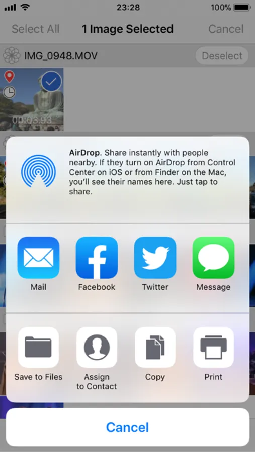 ◆Saving #1: Tap the share button to save a frame image to the Camera roll, or send to other services.