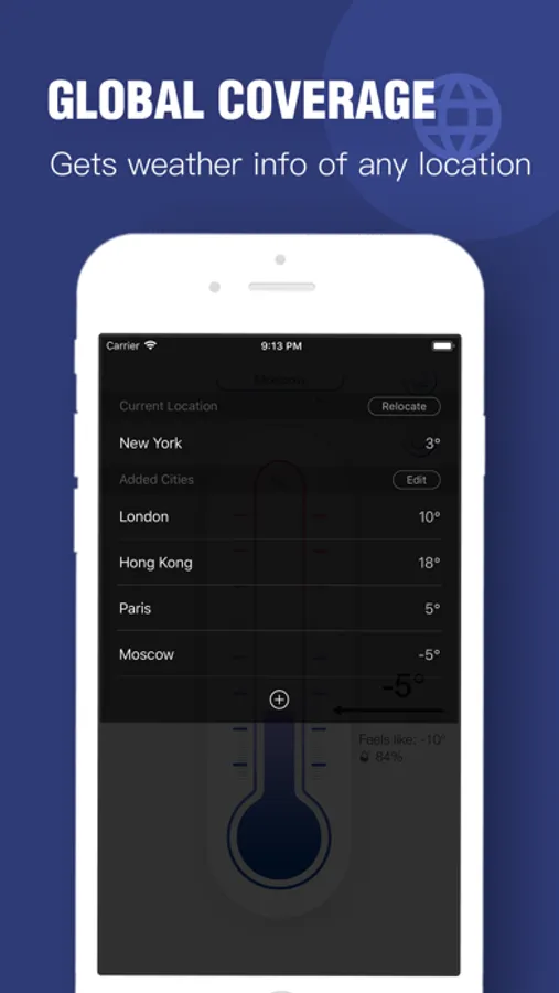 -An ambient temperature thermometer for cities worldwide: this live thermometer app is not only a weather detector for your own location, but also a global weather tracker that you can search world weather and temperature. You can check weather globally like Los Angeles, New York, Chicago, Las Vegas, Hawaii, Sydney, Perth, Amsterdam, Tokyo, Ottawa, Toronto, etc.