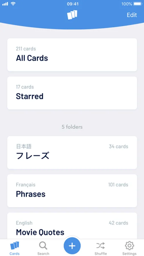 - Easily add, flip and edit cards