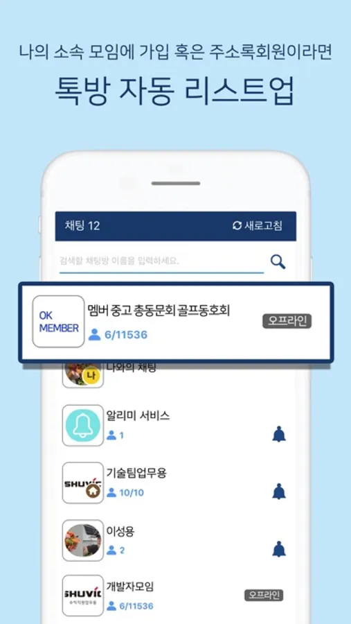 OK단체톡은 모임전용 메신저 서비스로 "ok동창 솔루션"을 이용하는 단체(동창회),협회,학회 홈페이지 및 어플 연동되어 그룹채팅이 가능합니다.