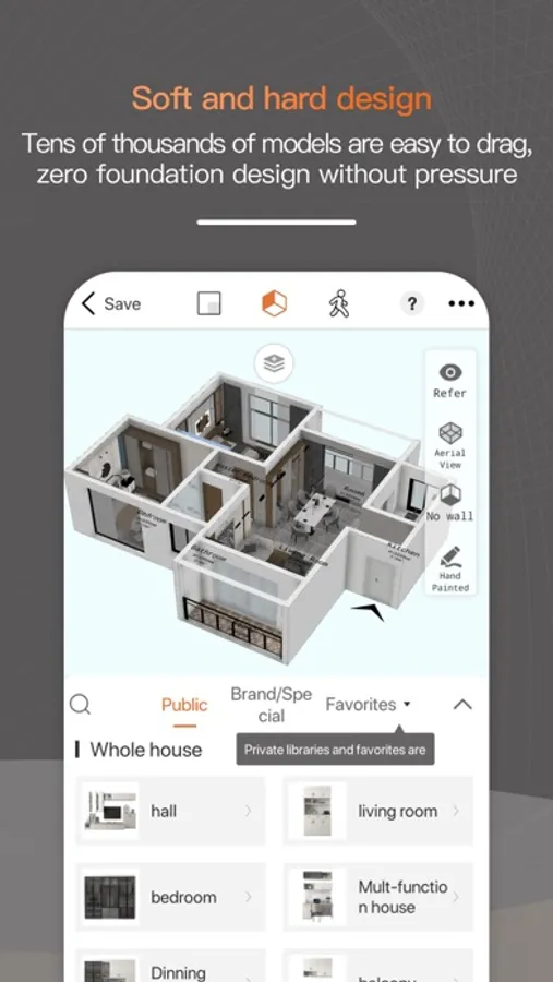 2. Interior design easily via mobile phone. Hardware and software design with massive models.