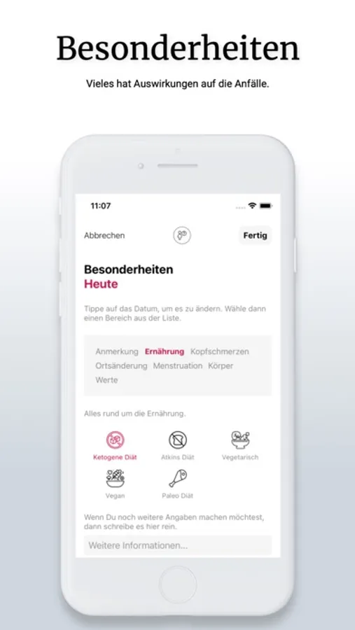 Jeder epileptische Anfall ist anders. Mit dieser App können Sie das dokumentieren. Neben der Art des Anfalls, können auch Dauer und zusätzliche Hinweise angegeben werden.