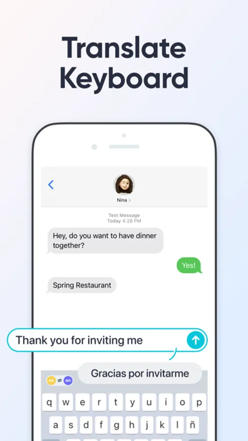 • Translate Keyboard: Write and translate instantly within your favorite apps. Chat without borders.