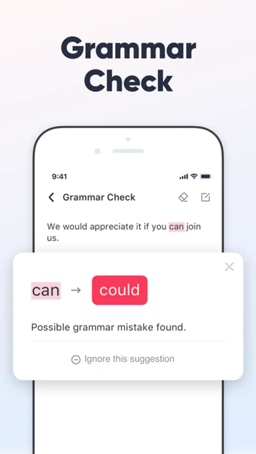 • Grammar Check: Enter or paste English text and check it with one click. Enjoy mistake-free writing!