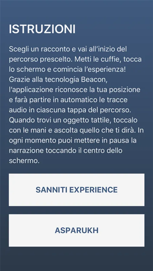 Grazie alla tecnologia Beacon, l’App riconoscerà la tua posizione e farà partire in automatico le tracce audio in ciascuna tappa del percorso. Quando trovi un oggetto tattile, toccalo con le mani e ascolta quello che ti dirà.