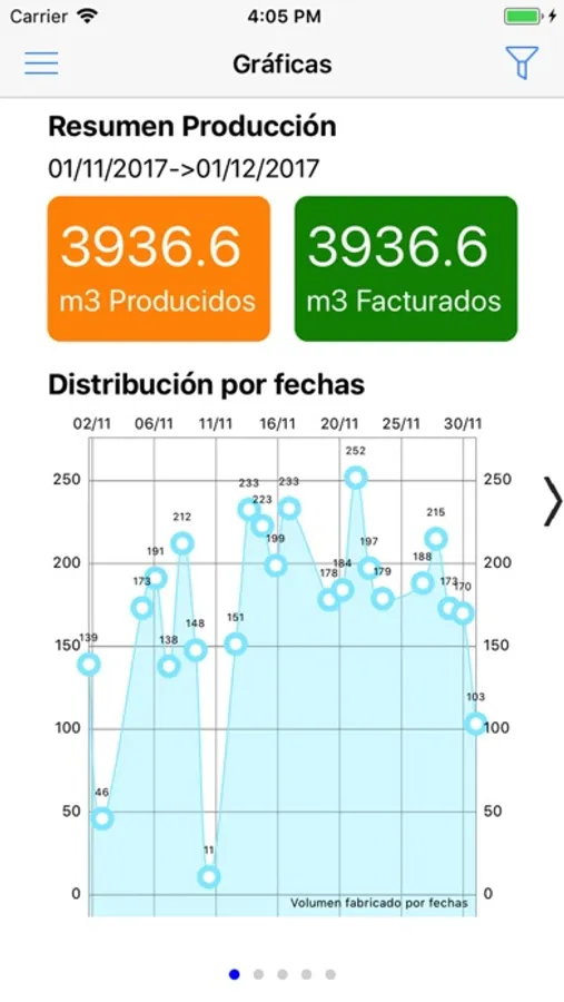 In a quick way you will have access to production comparative charts, in the time periods that you select. You can quickly analyze the works, customers, recipes and trucks used to serve the concrete.