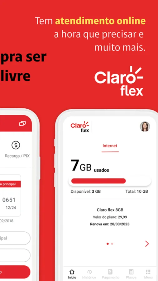 O Claro flex é um app disposto a evoluir junto com você! Dê seu feedback na aba Atendimento, dentro do app, e nos ajude a ter um Claro flex do seu jeito!