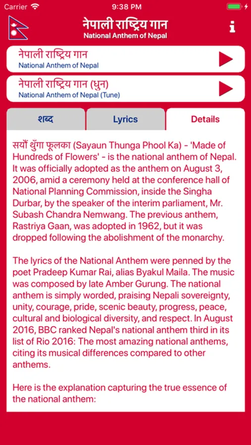 Keep a piece of Nepal in your pocket. Listen and sing along to the National Anthem of Nepal.