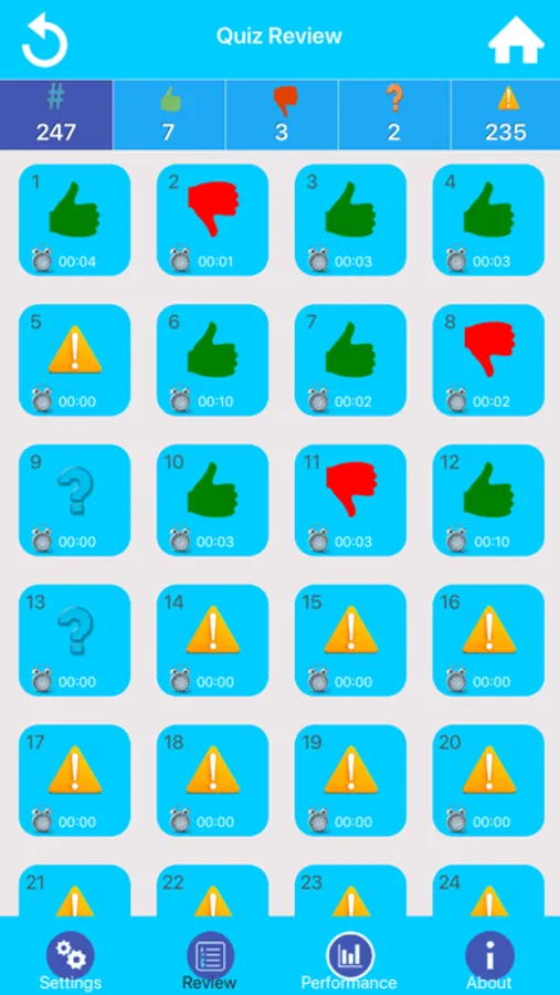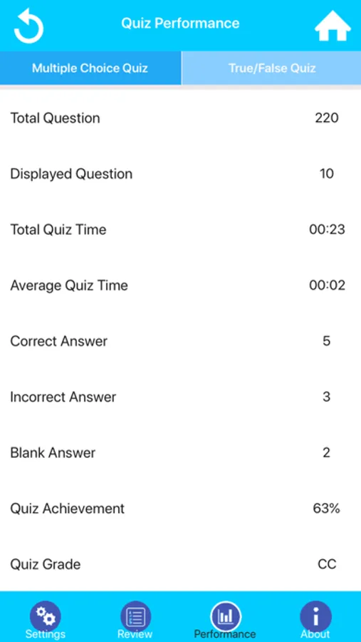 - There are 2 quiz mode. Multiple Choice Quiz and True/False Quiz.