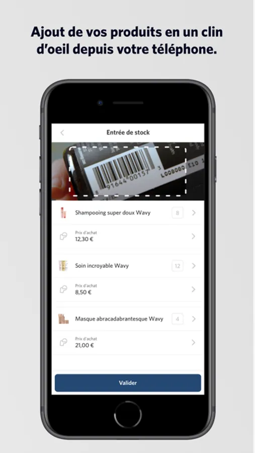 Finie la douchette ! Prenez votre téléphone, ouvrez votre application de caisse Wavy et scannez vos produits en un temps record.