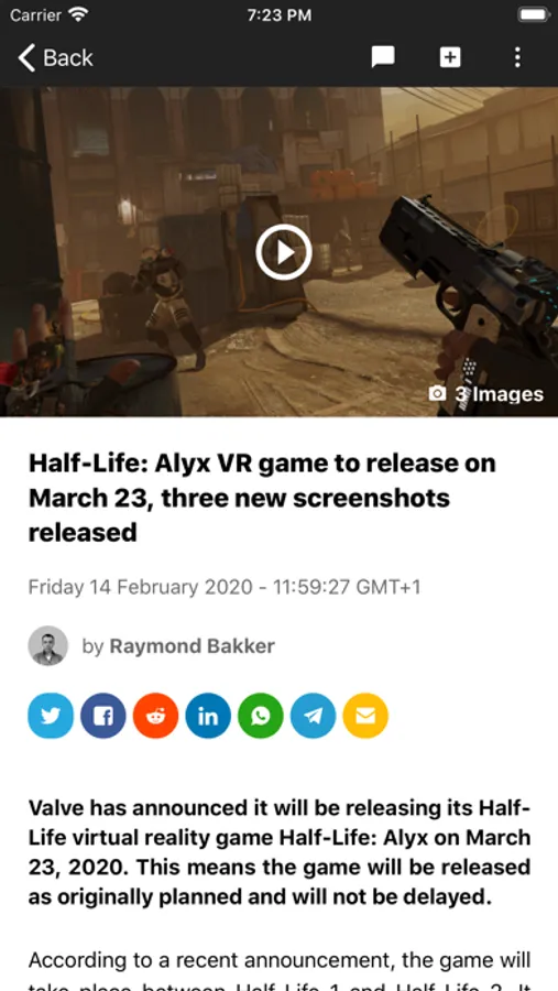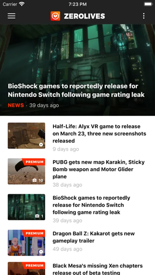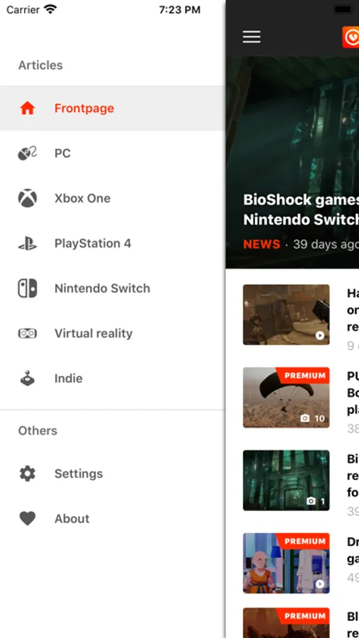The app features several news categories that allows readers to view news related to a specific platform, including PC, Xbox One, PlayStation 4, Nintendo Switch, Virtual Reality, and Indie.
