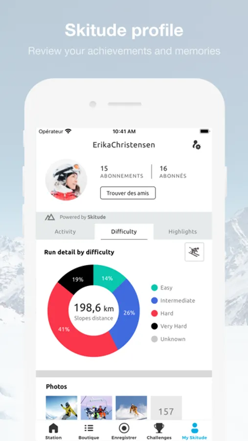 The App offers a range of features designed to optimize your experience before, during and after your trip. It’s very simple, plan your getaway and get real time updates on slope conditions. Set up your Skitude profile and track your activities on the slopes to get detailed stats about all your activities. And that’s not all, take part in challenges to be in with a chance of winning incredible prizes.