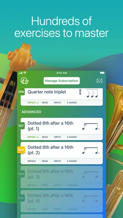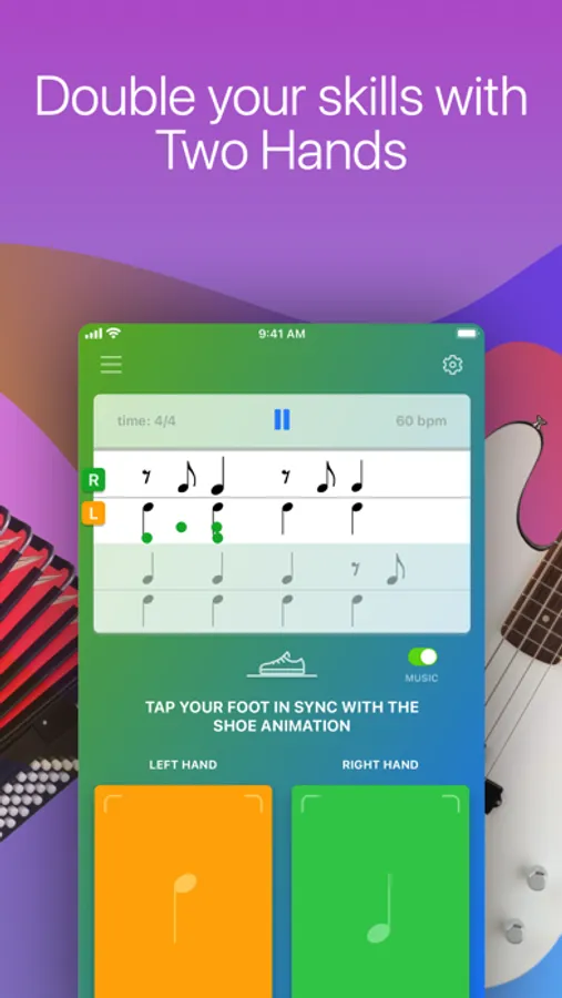 Whether you practice alone or with a teacher, Rhythm Trainer will help you to: