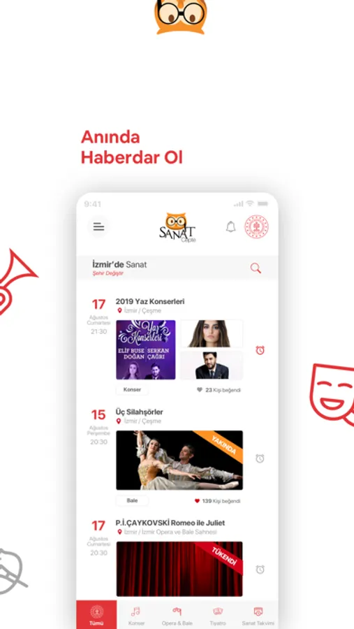 Bu uygulama sizlerin bütün sanat etkinliklerine hızlı ulaşmanızı, takviminizde işaretlemenizi, duyuruları çevrimiçi almanızı ve istediğiniz etkinlik bilgilerini detaylı bir şekilde görmenizi sağlayacaktır.