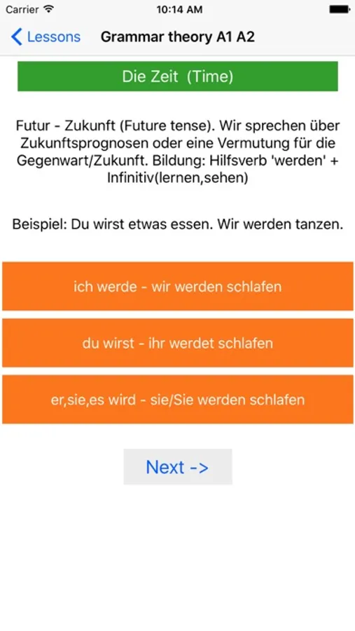 If you want to restore or improve your German grammar knowledge for absolutely free, this app is 100% for you! All theory flashcards and interactive exercises are fully available.