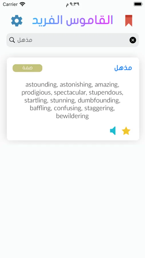 - دعم المفضلة ، يمكن تفضيل الكلمة للرجوع اليها فيما بعد بدون وجود حد في عدد الكلمات التي تستطيع اضافتها للمفضلة
