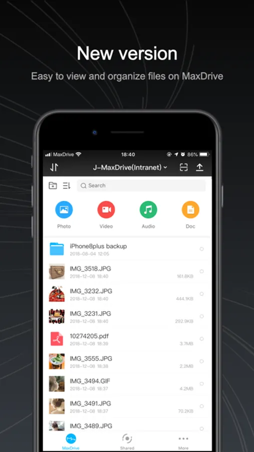 Organize files automatically. Categorize photos, videos, music and documents, easy to access.