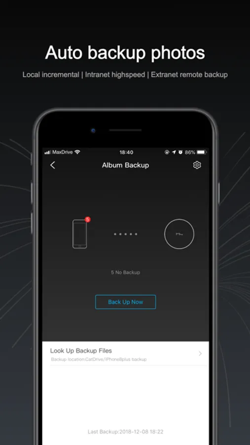 Auto backup for photos and videos on your phone. Back up photos and videos automatically. No worries about photos getting lost or memory taken up.