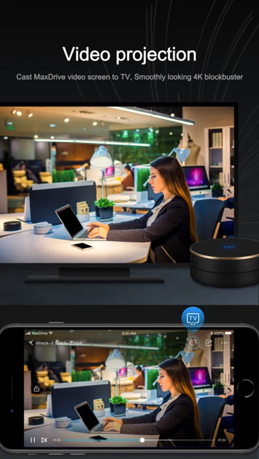 Large-screen display. A better visual experience to view photos stored in MaxDrive on TV.