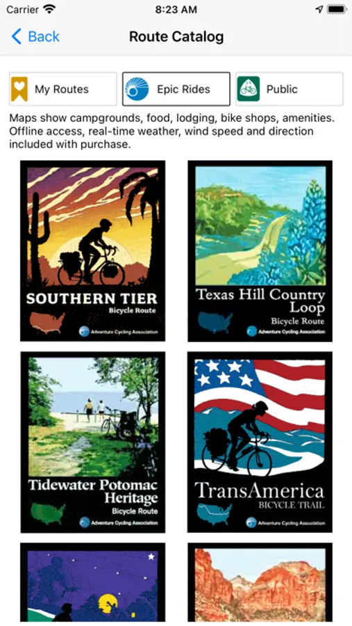 Adventure Cycling develops the best cross-country, loop, coastal, and inland cycling routes available. This app serves as an excellent companion to our paper maps. The Adventure Cycling Route Network features rural and low-traffic established bicycling routes through some of the most scenic and historically significant terrain in North America. Adventure Cycling’s Routes & Mapping department is constantly working on research and development of new routes as well as the maintenance of the 47,000 miles of existing routes.