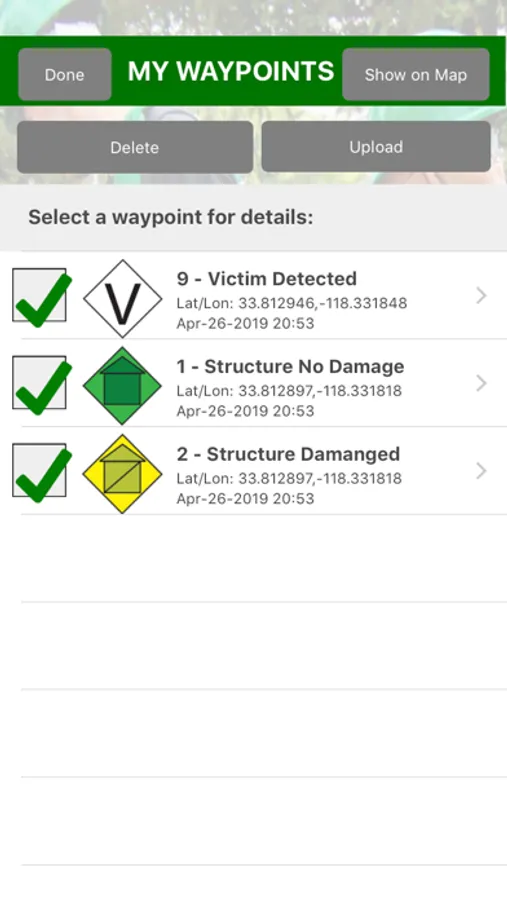 CERT Surveyor is designed by and for community emergency first responders for collecting information to help coordinate search and rescue operations. The app uses NAPSG USAR v7 FEMA CERT icons for dropping waypoints on a map; allows creating tracks at variable intervals and distance deltas; and loads pdfs maps as well as create maps with waypoint icons. All data can be uploaded to the accompanying website account and for data download as KML, GPX, and Excel file formats and for posting to your ArcGIS Online Operations Dashboard and more.