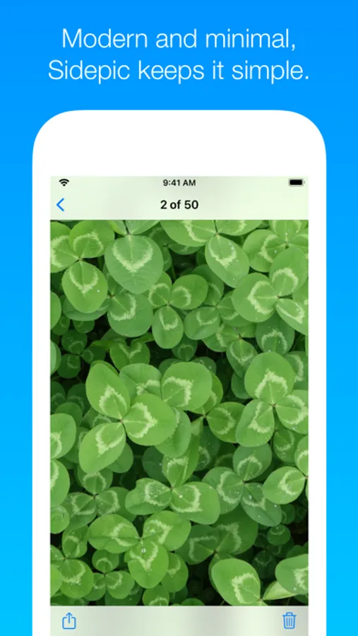Sidepic is built for the latest iOS versions, featuring a simple and intuitive design. Sidepic keeps the focus where it belongs: your photos.
