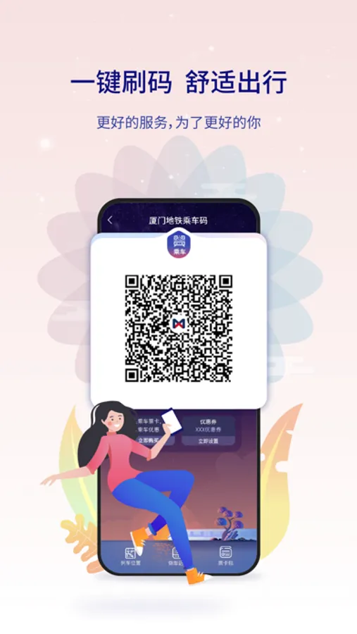 厦门地铁App是一款便民出行的手机应用,覆盖厦门所有地铁线路的查询、购票、乘坐等服务。手机购票,手机刷码进站,一个应用涵盖所有地铁服务,为乘客提供一种更先进、更方便的地铁乘坐方式。