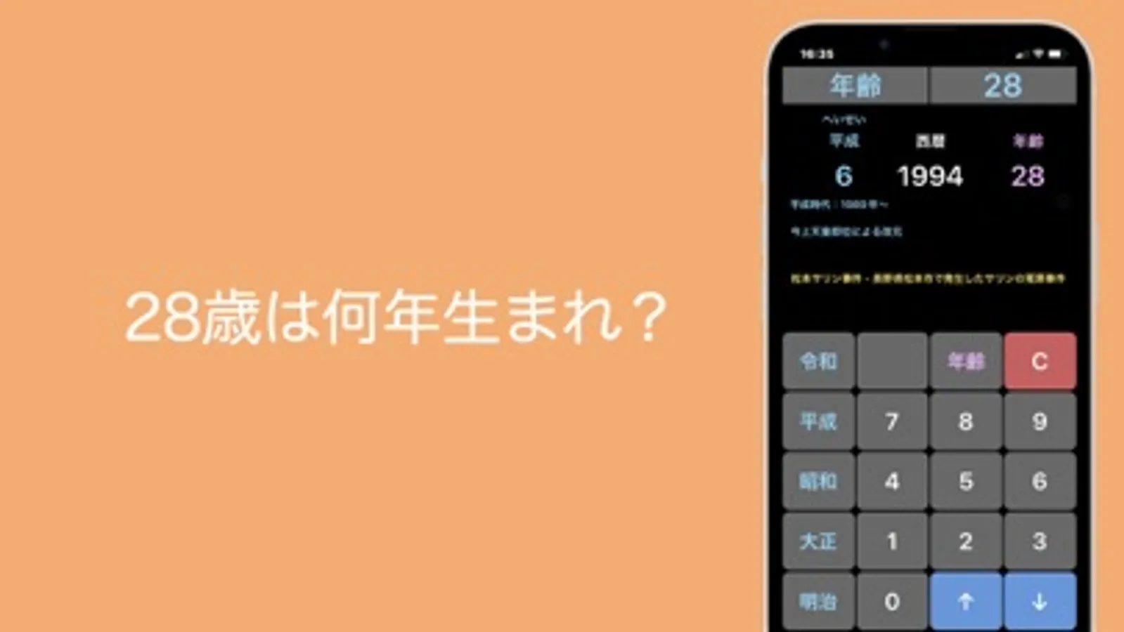 西暦・和暦の変換はもちろん年齢から誕生年を調べることもできます。