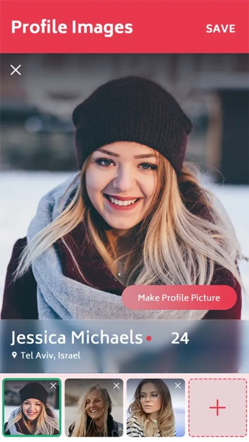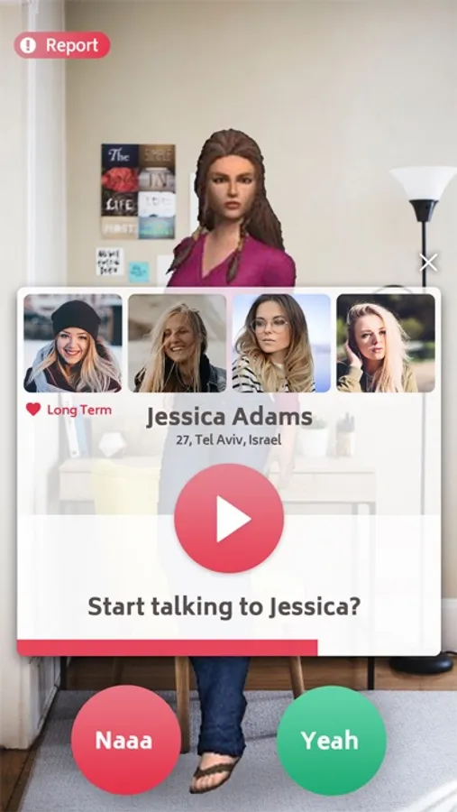 Once logged-in, users create an avatar of their choice and add 3 of their Facebook pictures. This allows for a quicker process of decision-making, in contrast to other possibly deceiving dating apps.