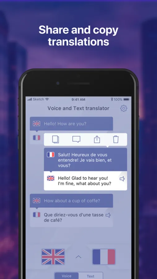 Note: the free of charge version may have limited number of voice translations per day and these restrictions can be changed.