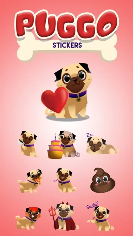 Step up your iMessage with this awesome set of Pugs Stickers Animated!
